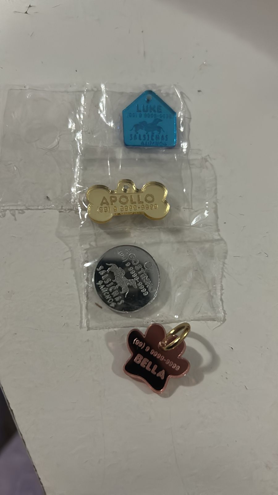 Diversas cores tanto de coleira quanto de plaquinha.
